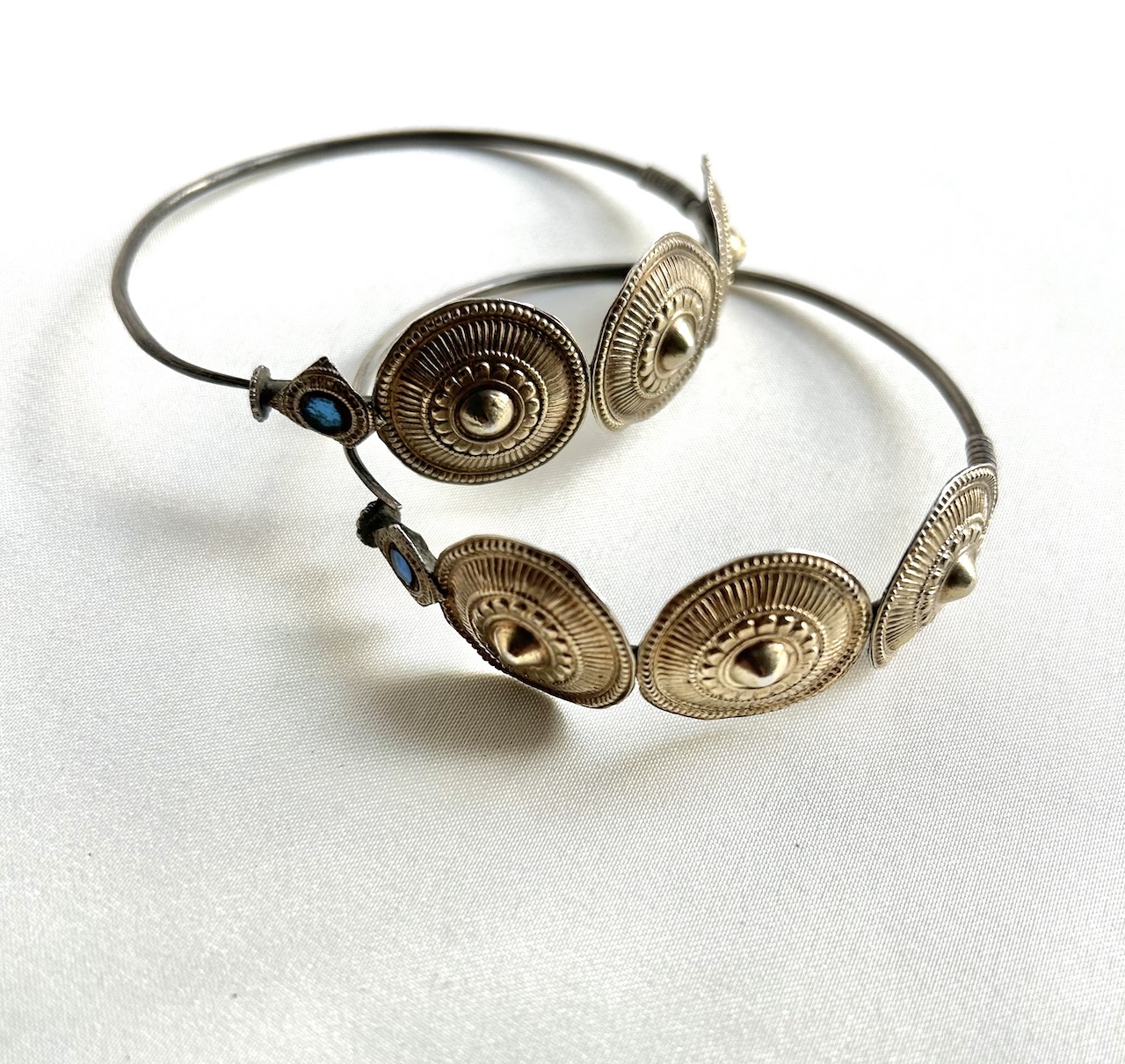 A pair of antique silver earrings from Central Asia inlaid with carnelian stones.