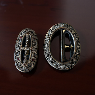 Top right: Open work iron and gilded buckle inlaid with paste 'Borneo diamonds' 94.2g