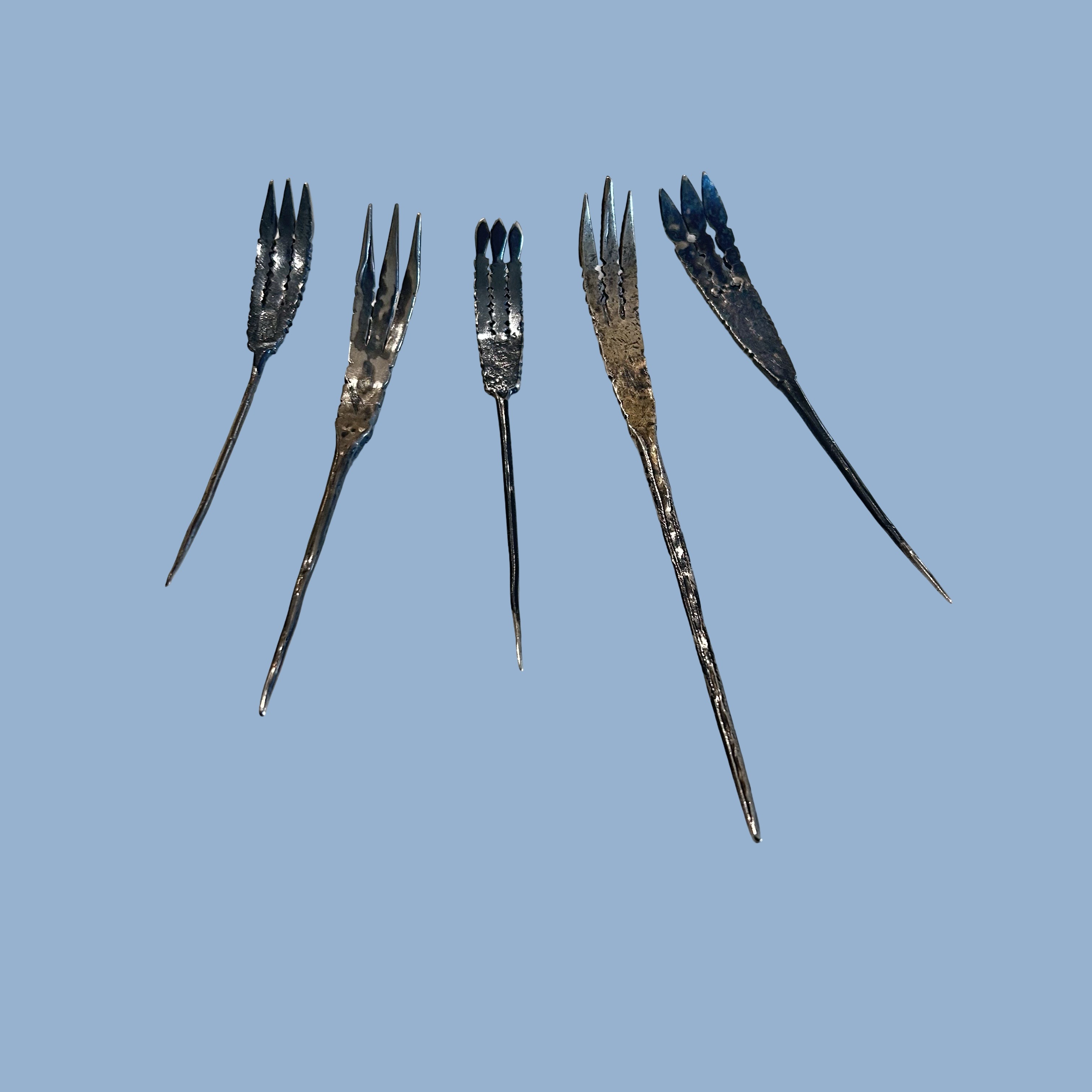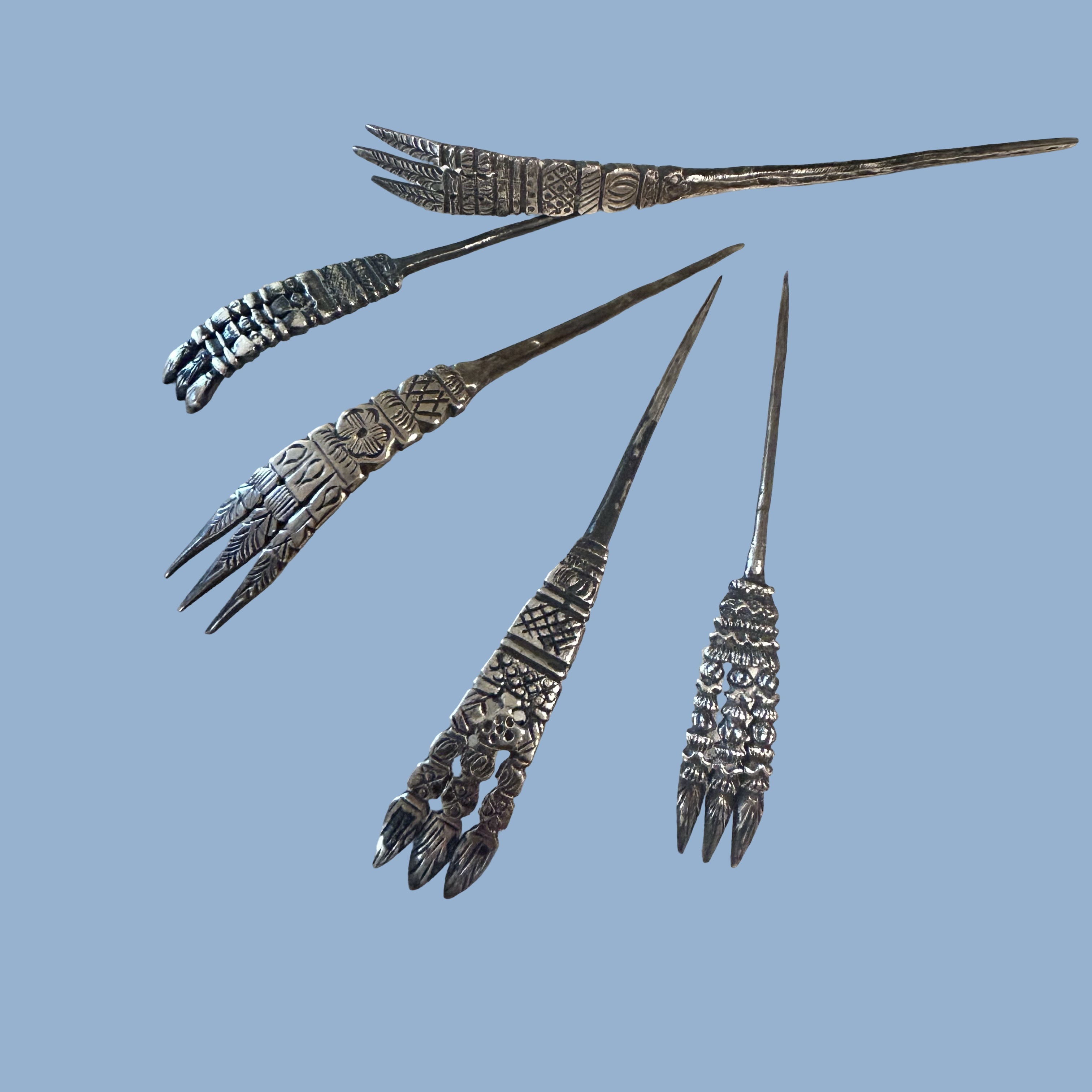5 single-prong silver hairpins. Guizhou, Southern China 19th century