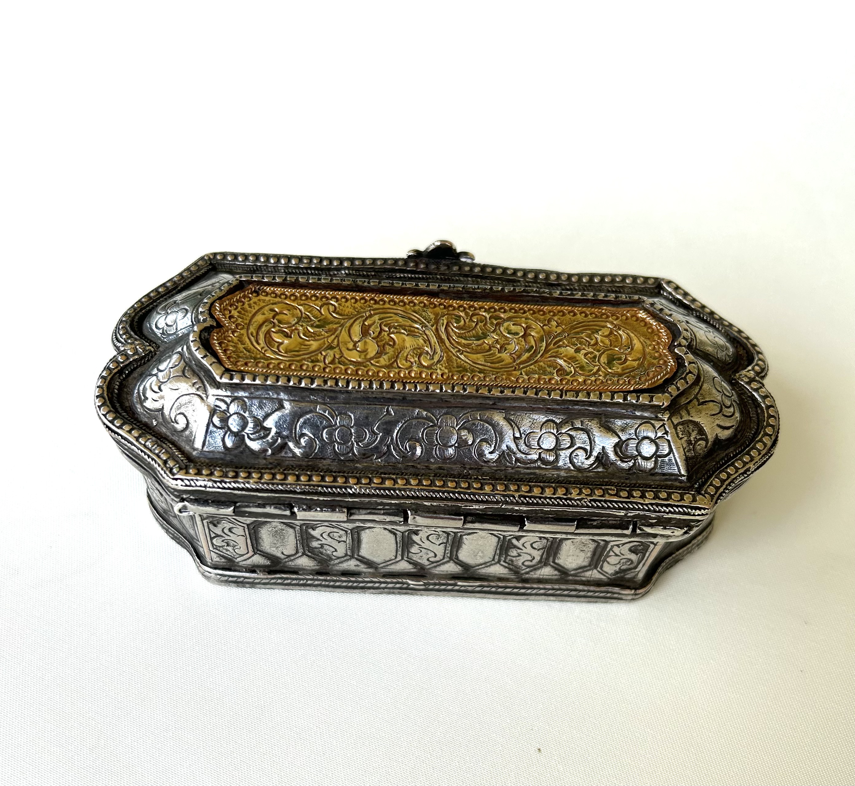 Large silver tobacco box with attached gold sheet on the top. Bugis people S. Sulawesi Indonesia