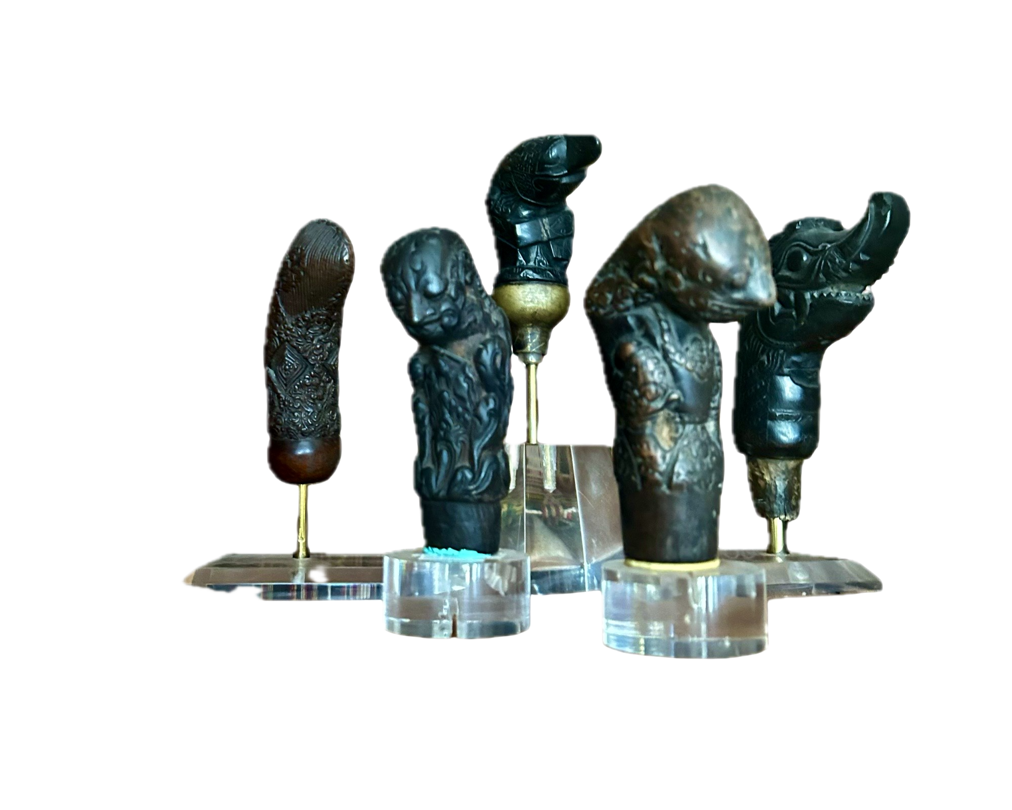 5 single-prong silver hairpins. Guizhou, Southern China 19th century