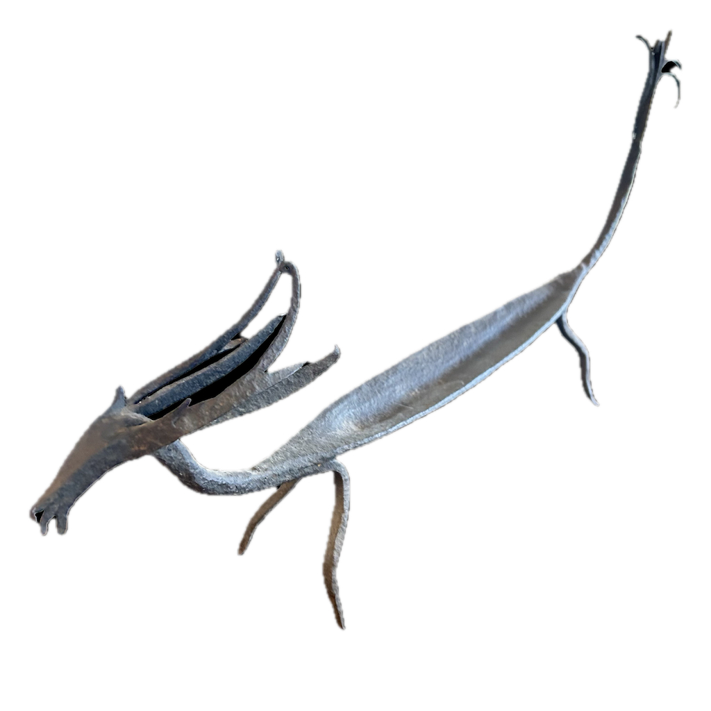 Dragon motif silver hooks with incised Daoist and the eight treasures emblems