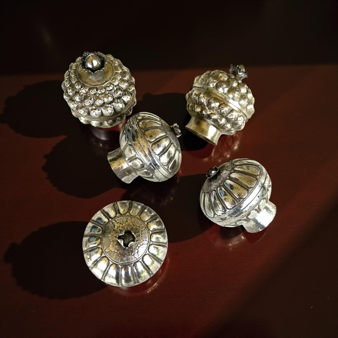 Five silver boxes Makassar and Palembang 1920's -1940's