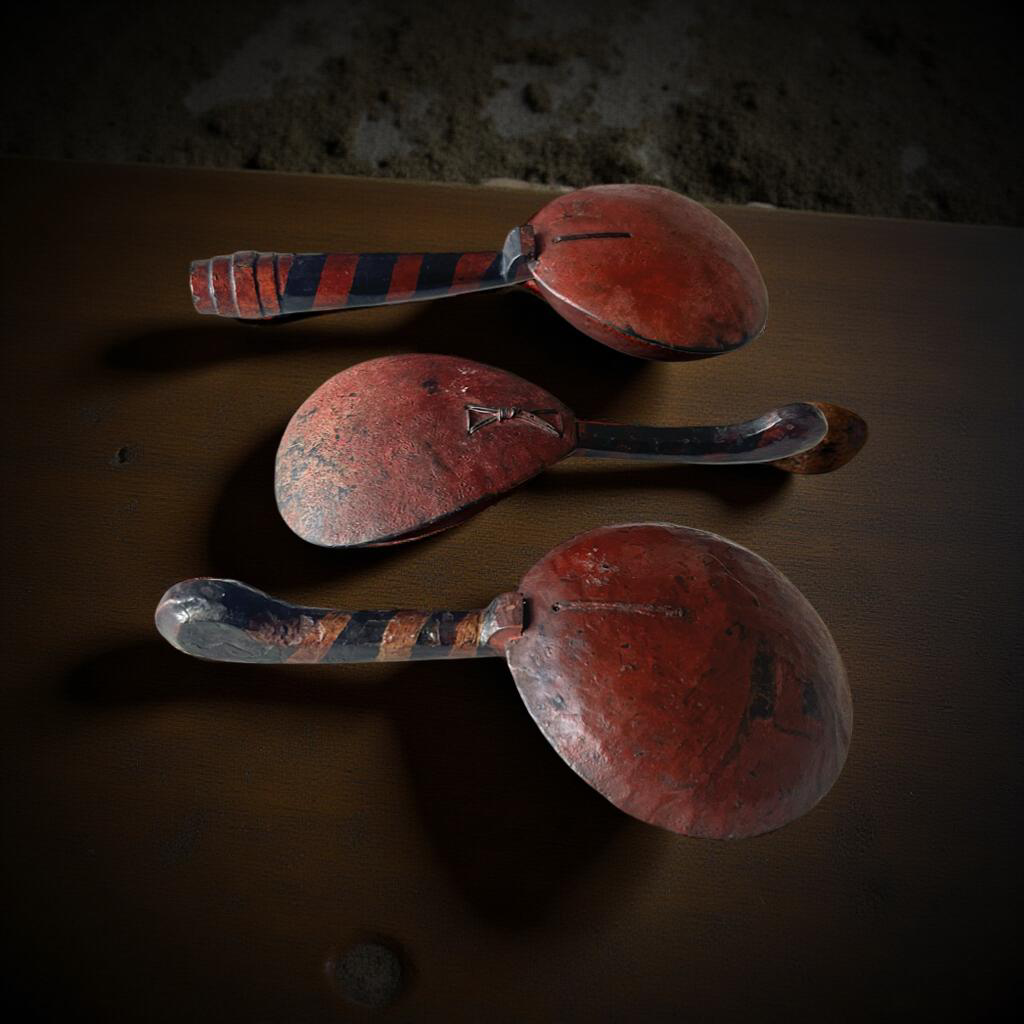 Peranakan wooden lacquer spoons. Palembang Indonesia 19-20th century