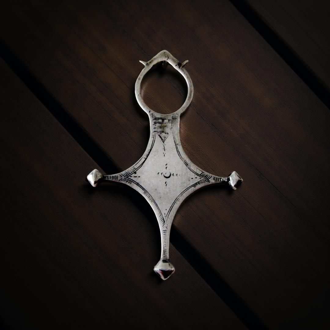 Tuareg crosses (Croix du sud) come in different shapes and motifs and they are named after oasis towns in Niger. They are passed down from father to son when the boy reached puberty. He says to his son that he has given him the four corners of the world where one would not know where one would end up. This powerful amulets can also be converted as a form of currency in times of need to buy cattle, clothing or food. The Agadez cross is best known of all crosses. The engraving of a round circle in the centre represents the eye of a chameleon which is symbolic of power and the jackal tracks along the four sides is symbolic of craftiness.