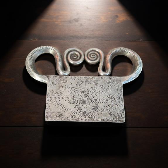 Hmong Soul Lock Pendant Incised with Flower Motifs from Laos. 19th-20th Century