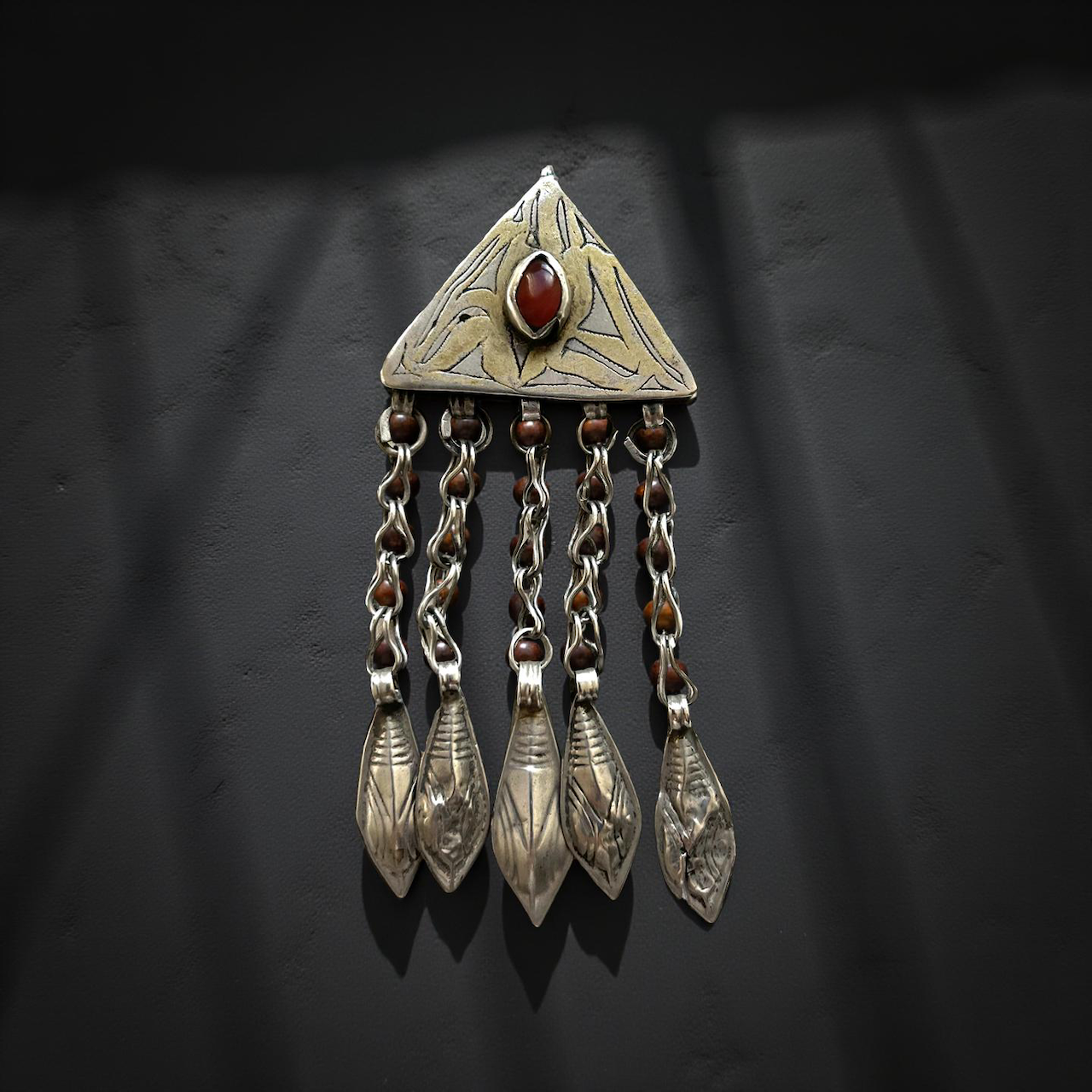 Turkoman people silver pendant inlaid with carnelian stone 19-20th century