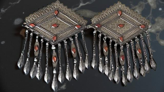 Tchapraz , Turkoman coat fasterners for women are for decoration therefore they are usually sewn lightly on the coat so that they could be removed easily when the coat needs to be washed. More common decorative ornaments like coins and other smaller silver pieces are permanently stitched on.