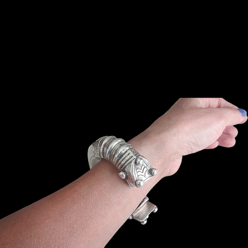A stylized animal head finials silver bracelet Sindh Pakistan 1920's