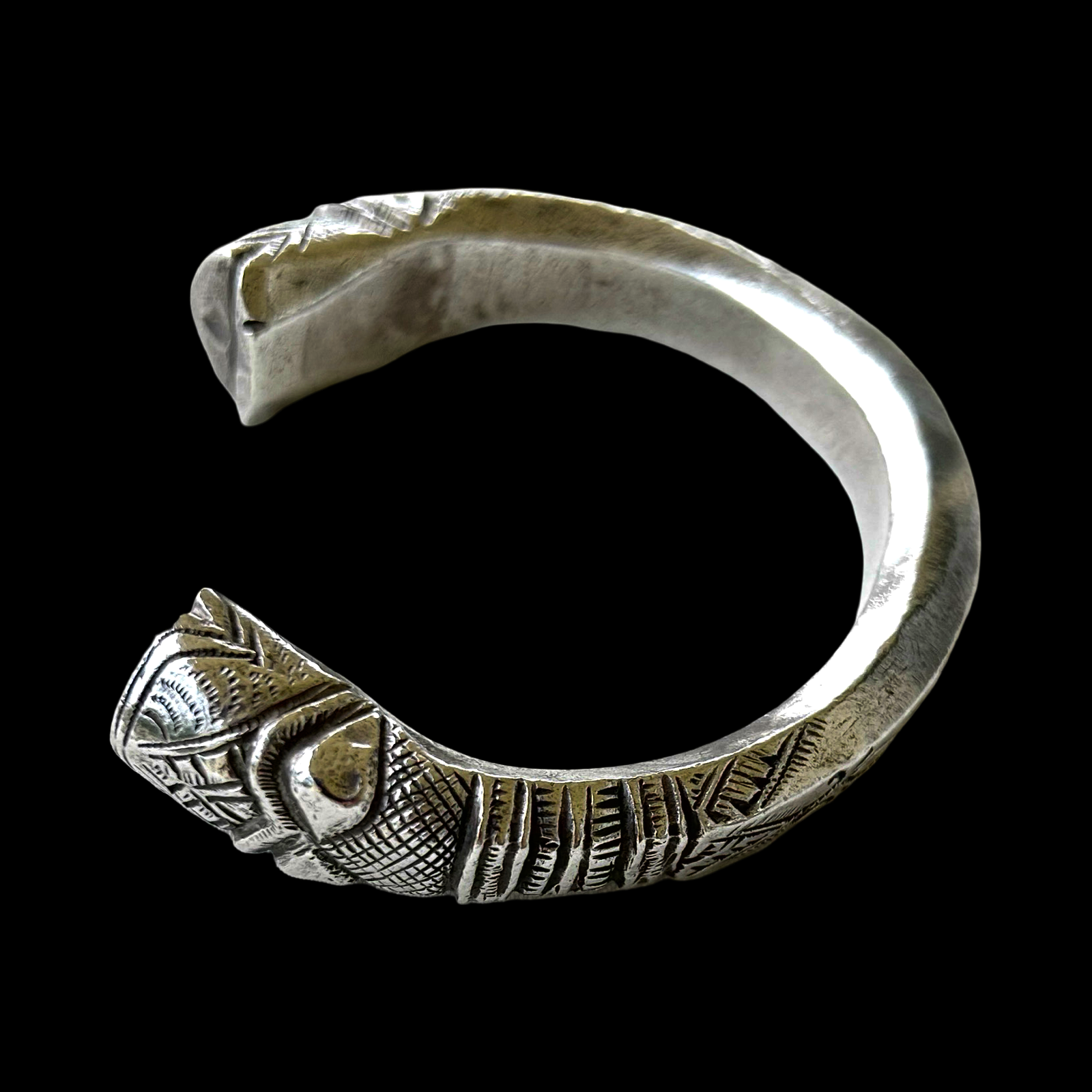 A stylized animal head finials silver bracelet Sindh Pakistan 1920's