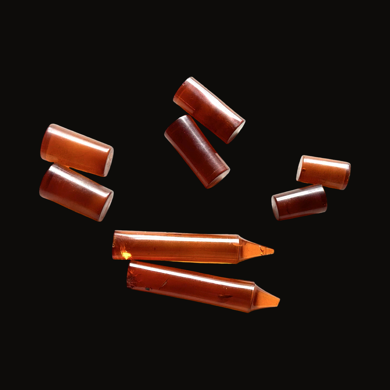 Four pairs of Burmese amber [burmite] ear plugs from Mizoram worn by Mizo tribal men, a tiny state of North east India that borders with Myanmar. The Mizos love burmite for its color that ranges from reddish to dark brown color. Because of its miraculous properties it has long been used as amulets or in religious ceremonies for purification.