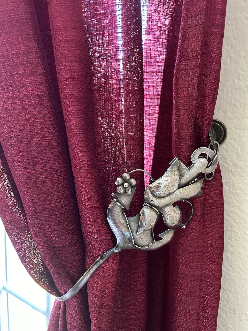 Sea bird perched on an anchor silver curtain tie-back hooks