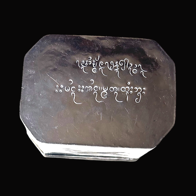 Large silver tobacco box with attached gold sheet on the top. Bugis people S. Sulawesi Indonesia