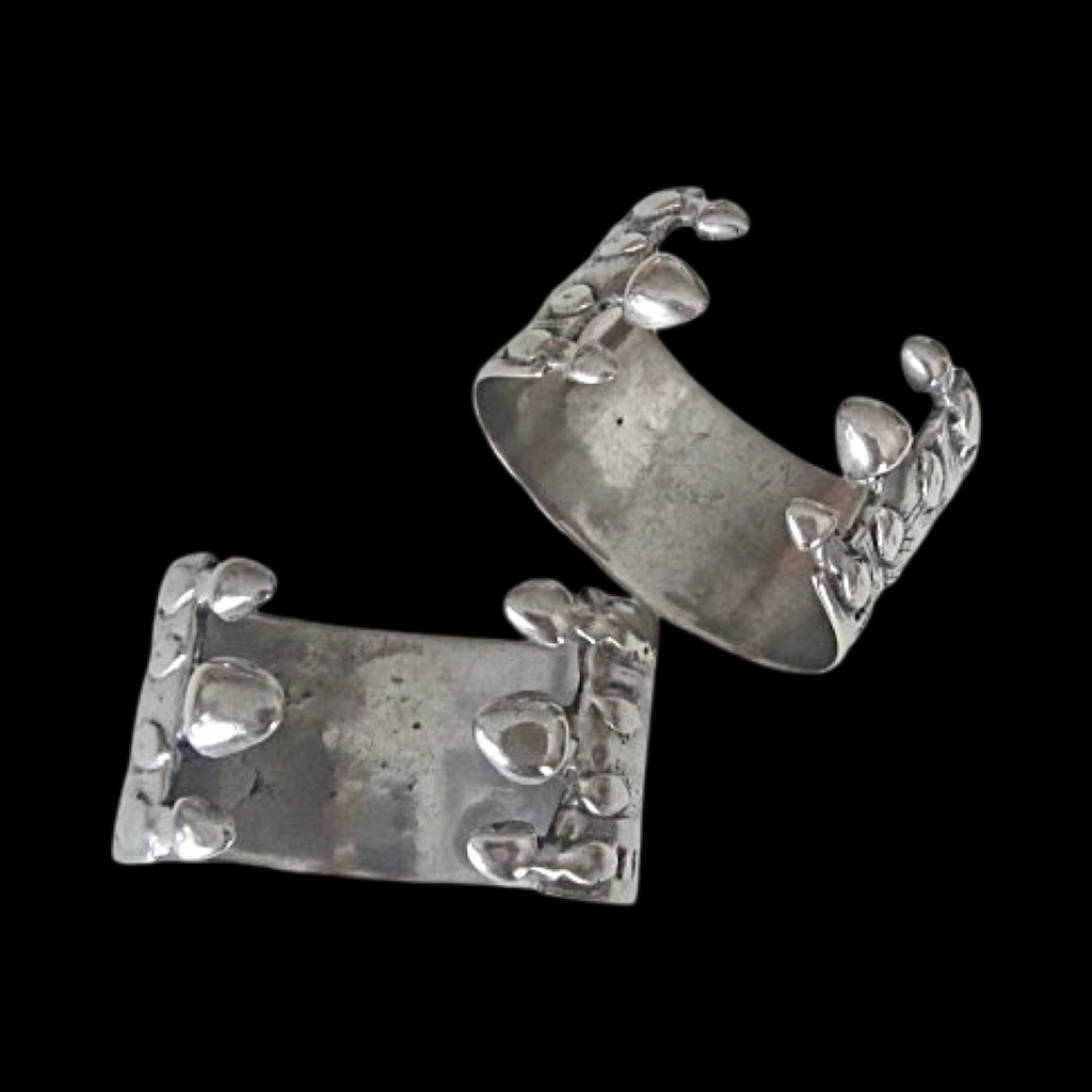 One silver cuffs decorated with three flowers. Sindh Pakistan 1920's