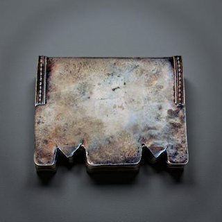 Large silver tobacco box with attached gold sheet on the top. Bugis people S. Sulawesi Indonesia