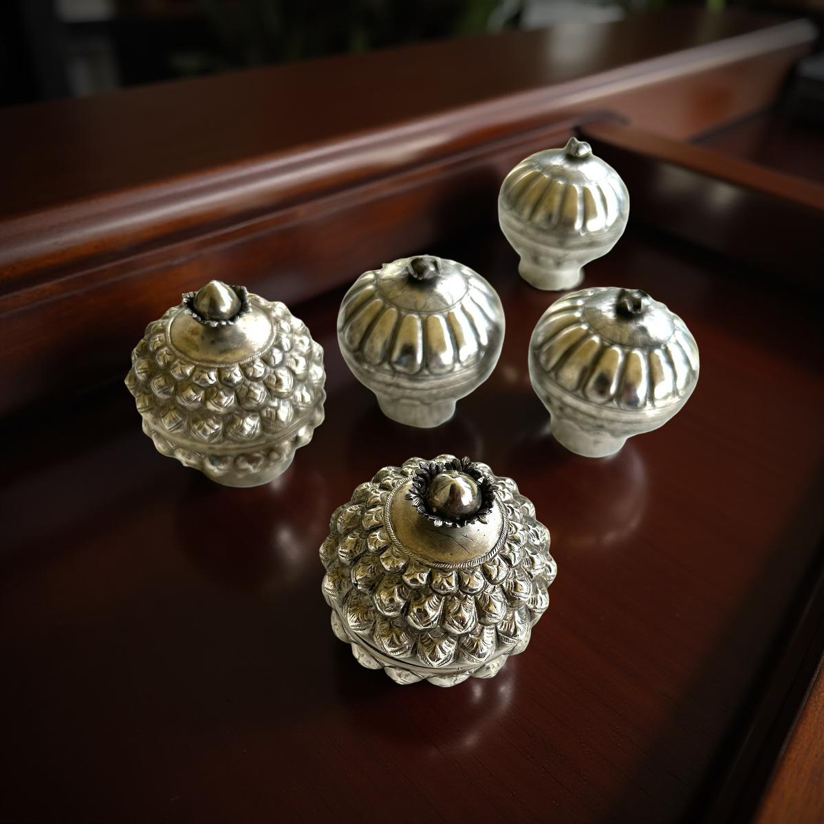 Five silver boxes Makassar and Palembang 1920's -1940's
