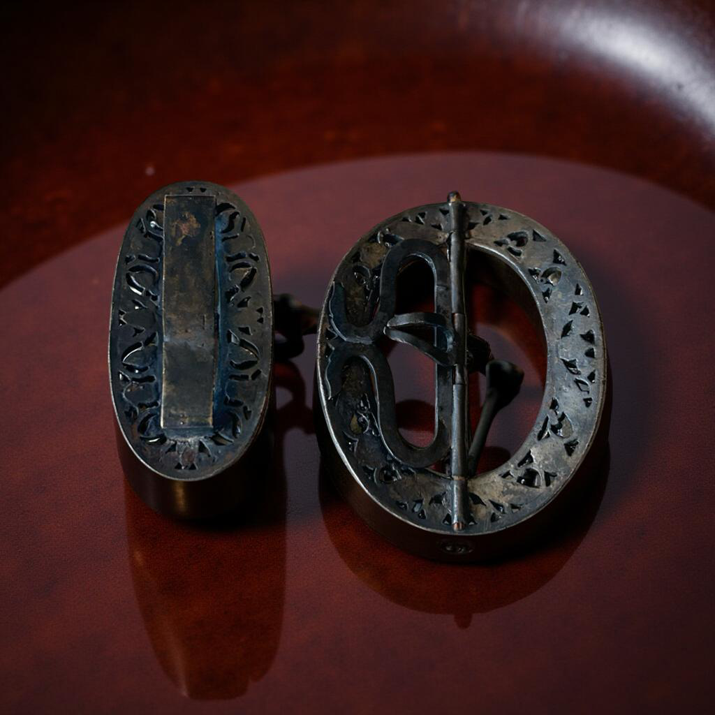 Dressed Javanese man's belt buckle for securing their formal sarong on formal visits to the Kraton. It is made of iron inlaid with paste and red garnet stones.