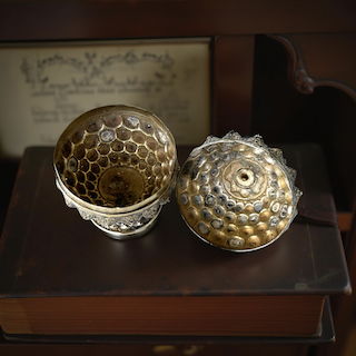 Open work silver ornaments for fragrant flowers. Baba Nyonya Indonesia 19th century