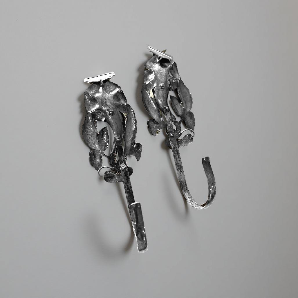 Leaves and flower silver tie-back hooks